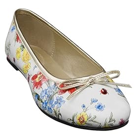 The Women's Sable Floral Ballet White Flats Shoes BY Xhilaration® a Floral Pattern Embellished with Bow, Faux-Leather Upper with Thermoplastic Rubber Outsoles, Features Slip On Styling with Traditional Round Toe, Tagless Footbed, Flat Sole.